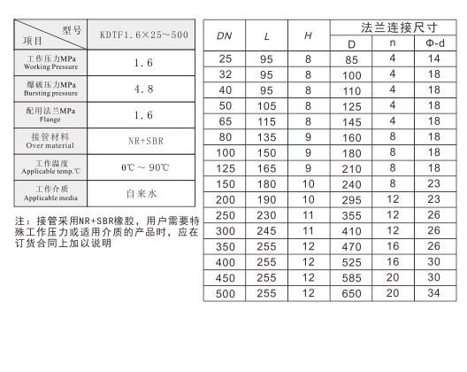 KDTF1.6X25-500 單球體橡膠撓性接管