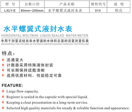 水平螺翼式液封水表